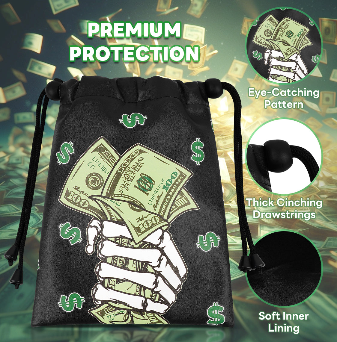 Black PU Finger Money Printing Golf Valuables Pouch