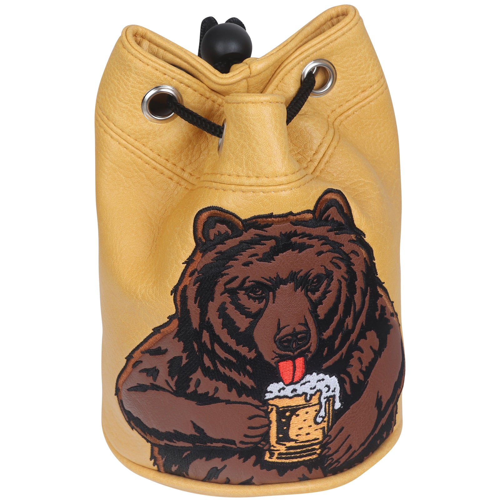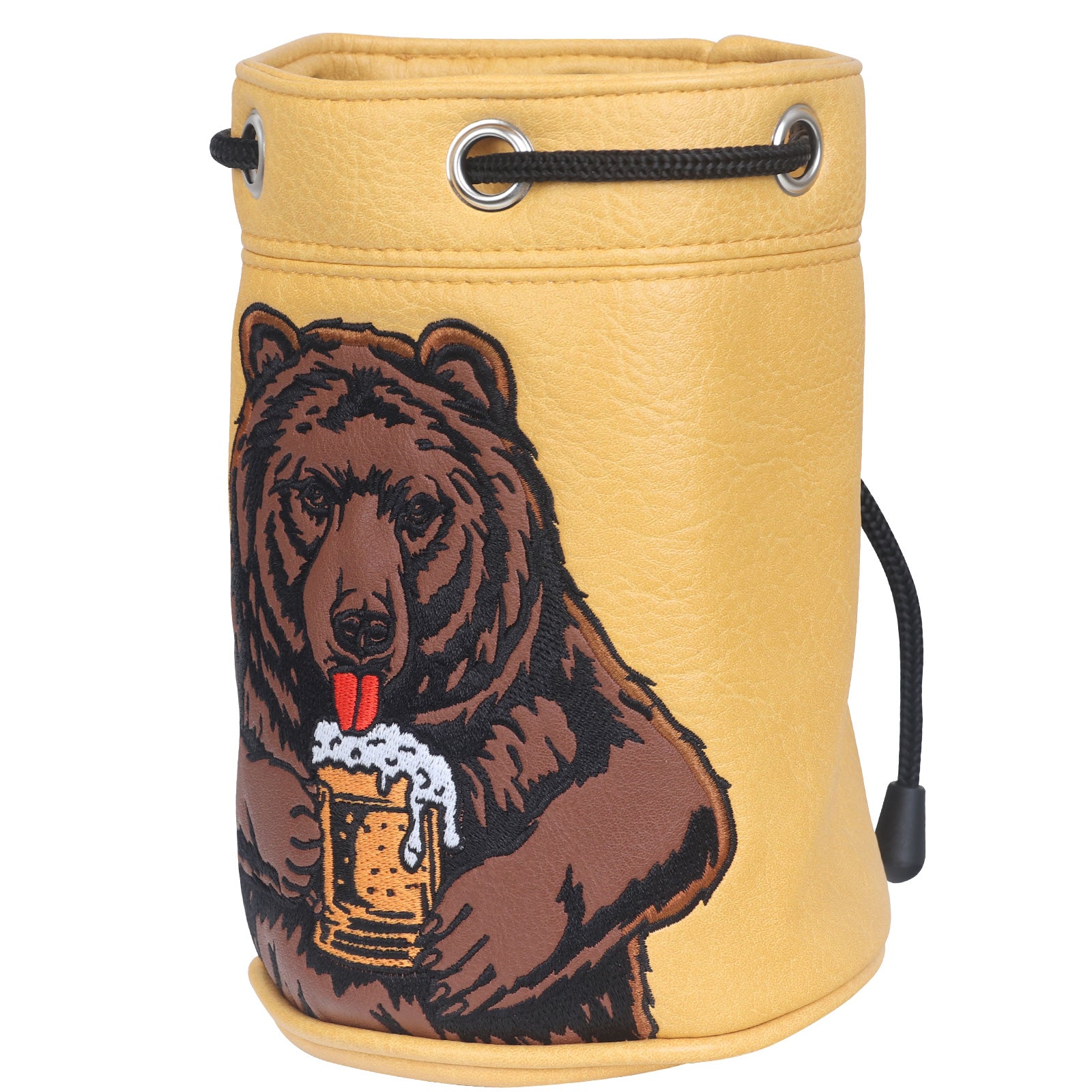 Dark Yellow Brown Bear Cylinder Golf Valuables Pouch