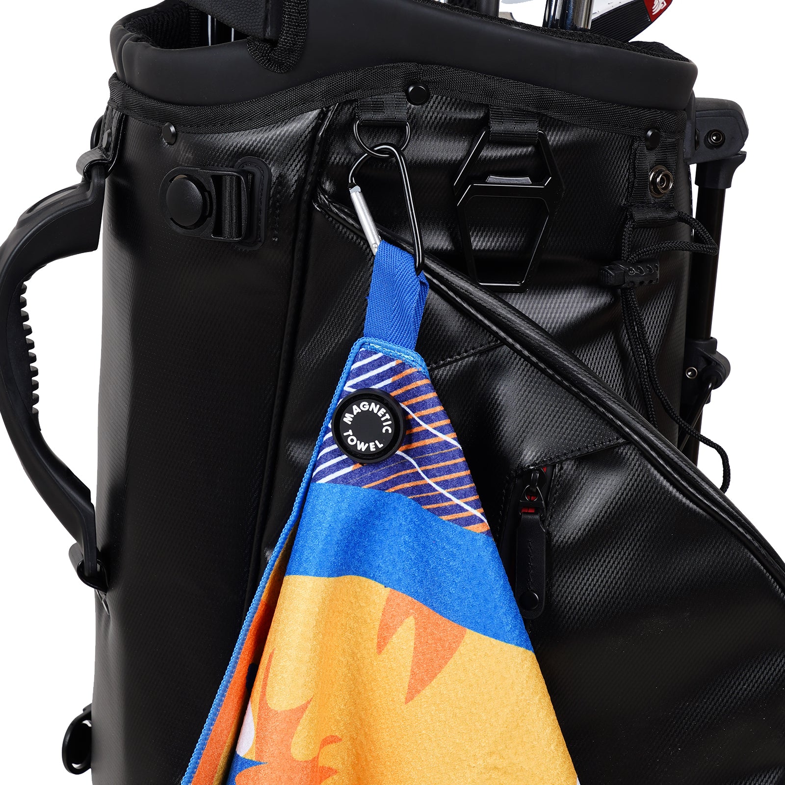- 8 inch center slit easily over clubs,alignment stick,it doesn't get lost before and after a game